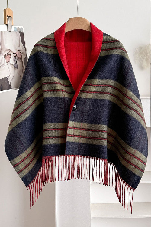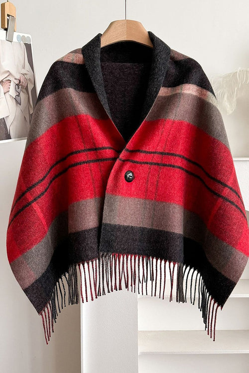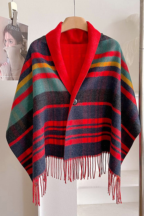 Plaid Fringed Cape (Red)